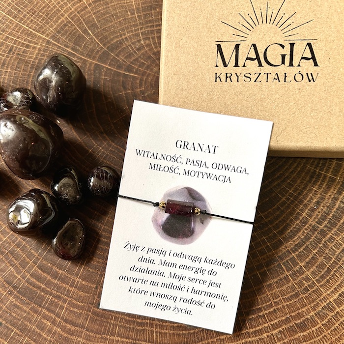Granat: Intensywnie bordowy kamień, który symbolizuje pasję, energię i siłę witalną. Granat dodaje pewności siebie i odwagi, a jego głęboki kolor przyciąga spojrzenia.