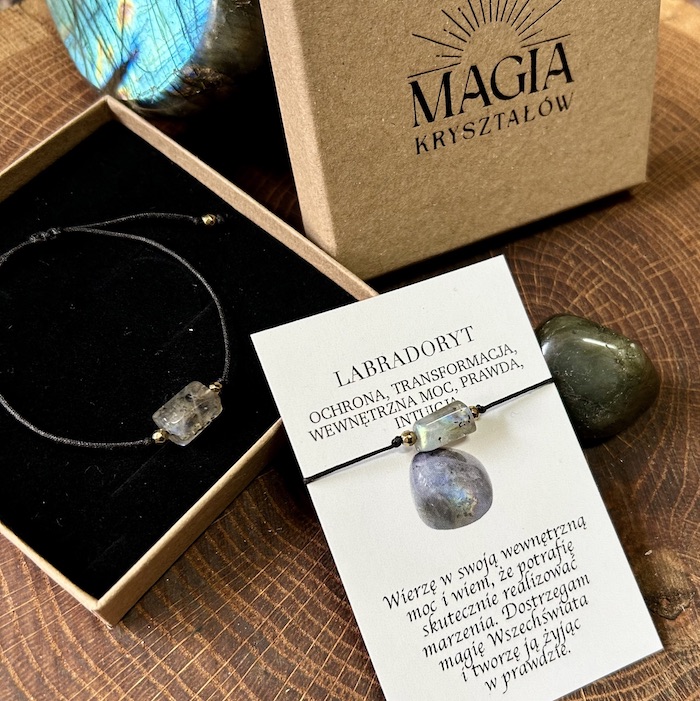 Labradoryt: Kamień o mistycznym blasku, który mieni się odcieniami szarości, błękitu i zieleni. Labradoryt jest symbolem intuicji i transformacji, a jego magiczne refleksy dodadzą Twojej stylizacji wyjątkowego charakteru.