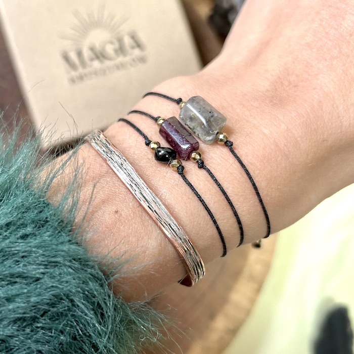 Odkryj subtelne piękno i moc natury z naszymi minimalistycznymi bransoletkami na sznurku. Każda bransoletka została wykonana ręcznie z najwyższą starannością, a jej prosty design podkreśla naturalny urok kamieni szlachetnych.
