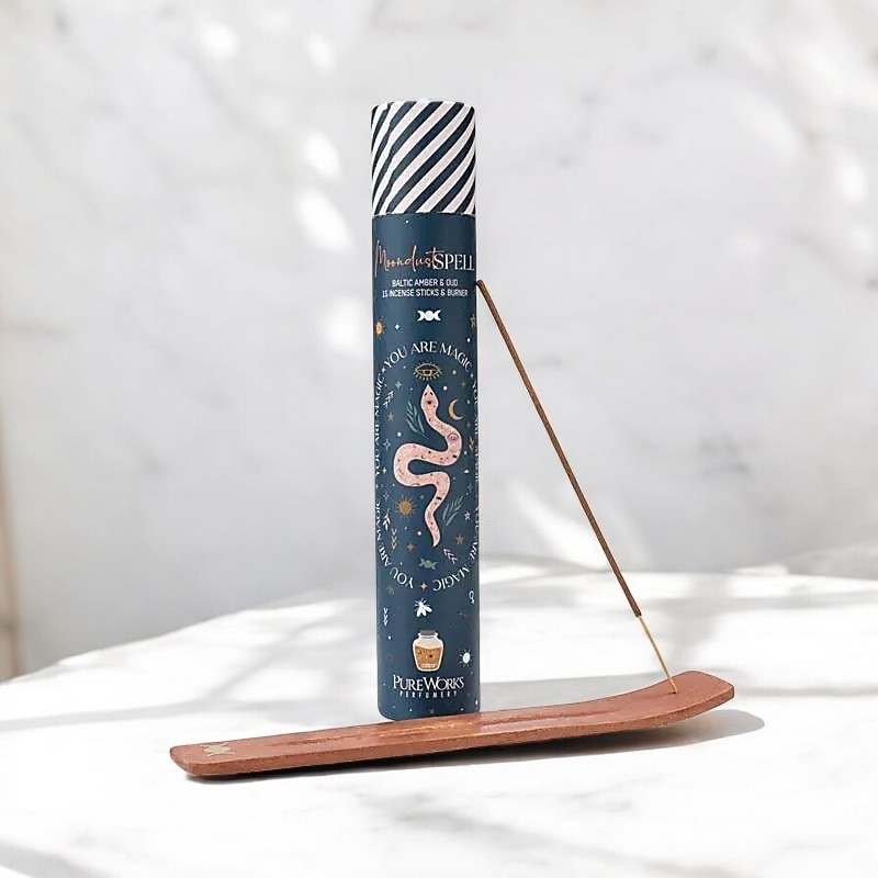Moondust Spell Bałtycki bursztyn i oud – Zanurz się w głębokim, zmysłowym aromacie bursztynu bałtyckiego i oudu, który niczym księżycowy blask, rozświetli Twoje zmysły i wprowadzi harmonię do Twojej przestrzeni.