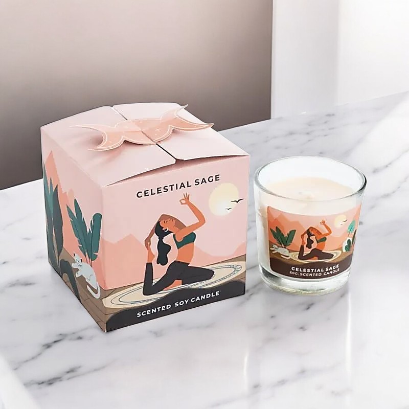 Oczyszczająca i kojąca świeca sojowa o zapachu szałwii, inspirowana spokojem jogi. Kolekcja Moonshine Yoga oddaje esencję spokojnej praktyki, oferując odświeżające mieszanki i kojące aromaty. Ta świeca jest idealna do wypełnienia Twojej przestrzeni spokojną energią, oczyszczenia jej i promowania chwil wewnętrznej refleksji.